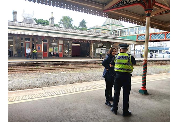 Police and Crime Commissioner Alison Hernandez with a police officer at Torquay Railway Station